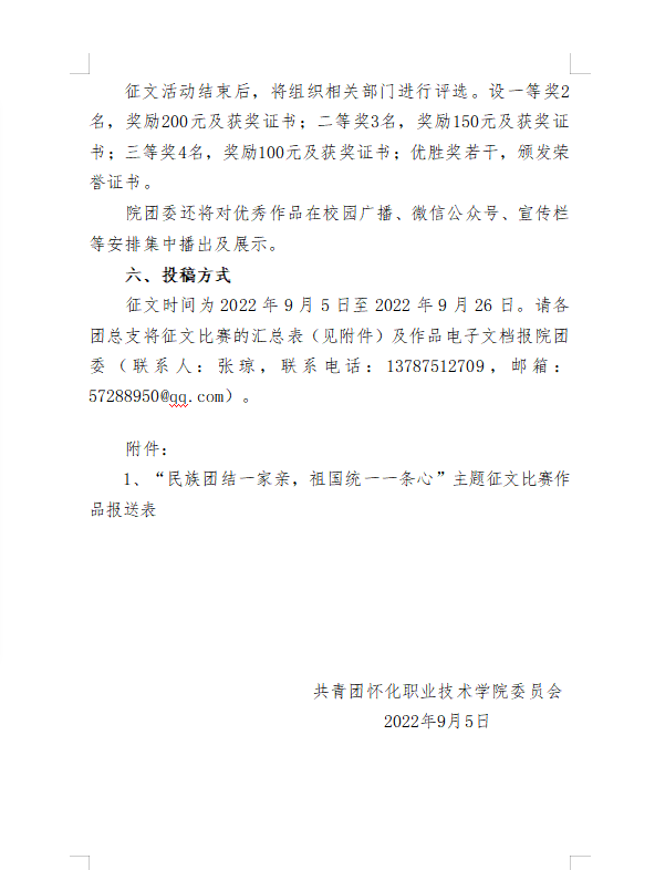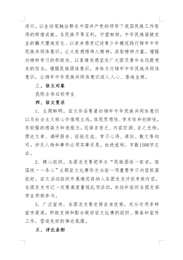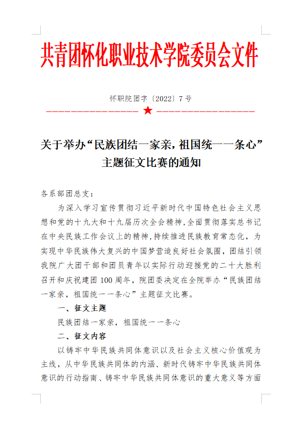 关于举办“民族团结一家亲,祖国统一一条心”主题征文比赛的通知
