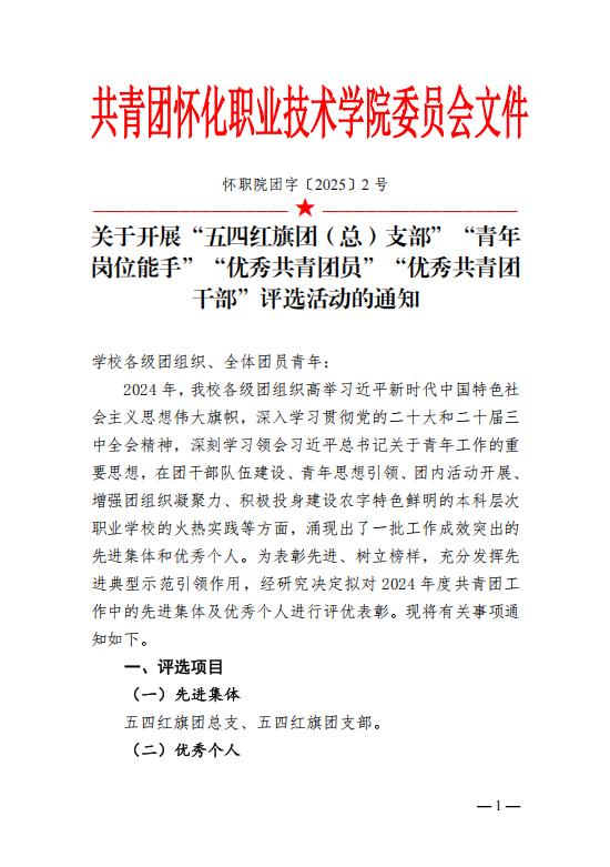 《关于开展“五四红旗团(总)支部”“青年岗位能手”“优秀共青团员”“优秀共青团干部”评选活动的通知》